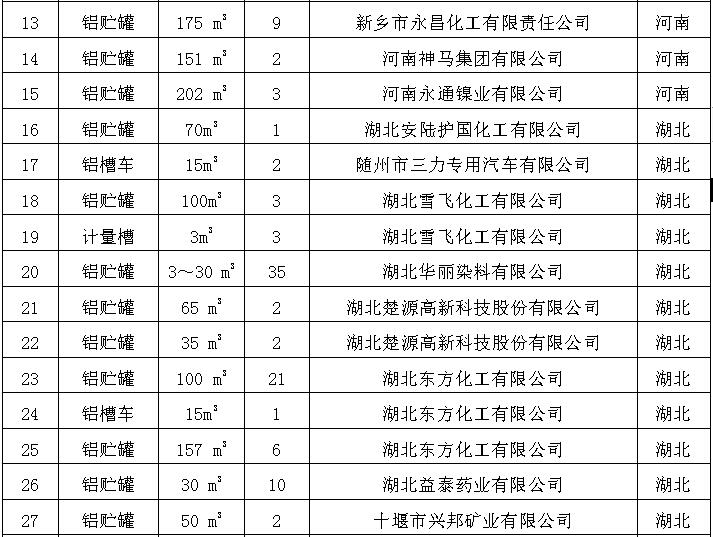 儲罐設(shè)備部分業績表(biao)